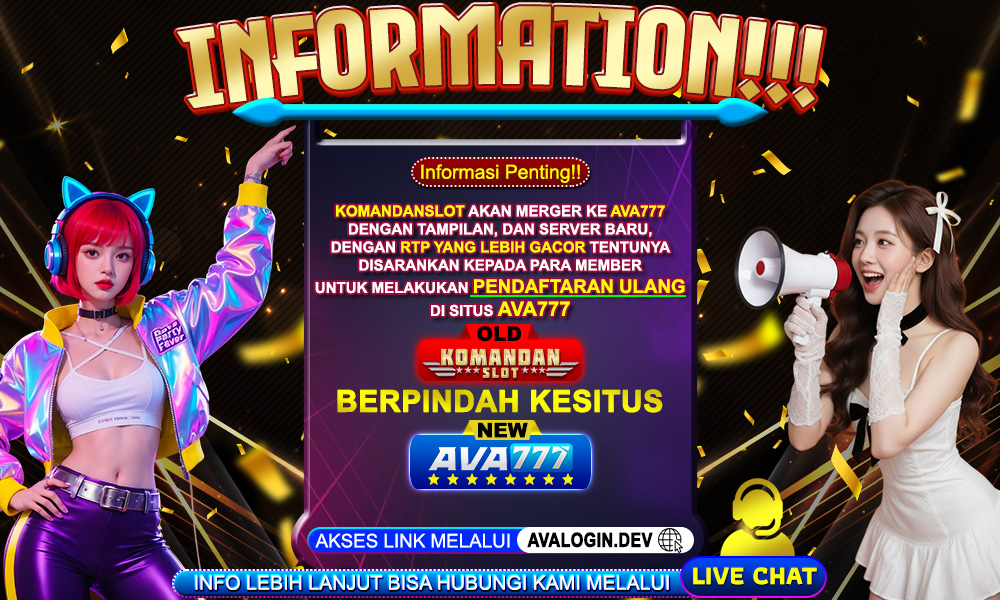 KomandanSlot akan Merger ke AVA777, Dengan Tampilan, dan Server baru, dengan RTP yang lebih GACOR tentunya , Disarankan kepada para member untuk melakukan pendaftaran ulang di Situs AVA777, Akses Link Melalui AVALOGIN.DEV